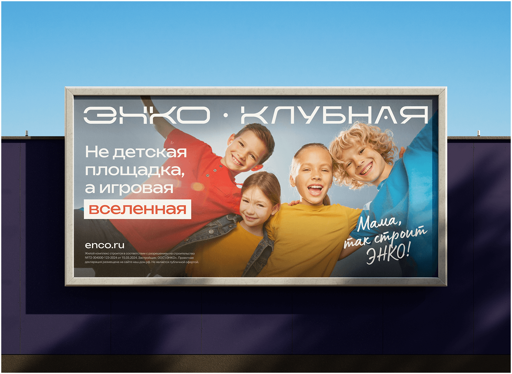 При разработке стартовой рекламной кампании мы опирались на тизер, с которым застройщик впервые вышел в Казани — «Мама, я в Казани». В рамках проекта эта идея получила продолжение в формате «Мама, я на Клубной», а затем логично перешла в раскрытие принципов работы застройщика с заголовком «Мама, так строит ЭНКО».