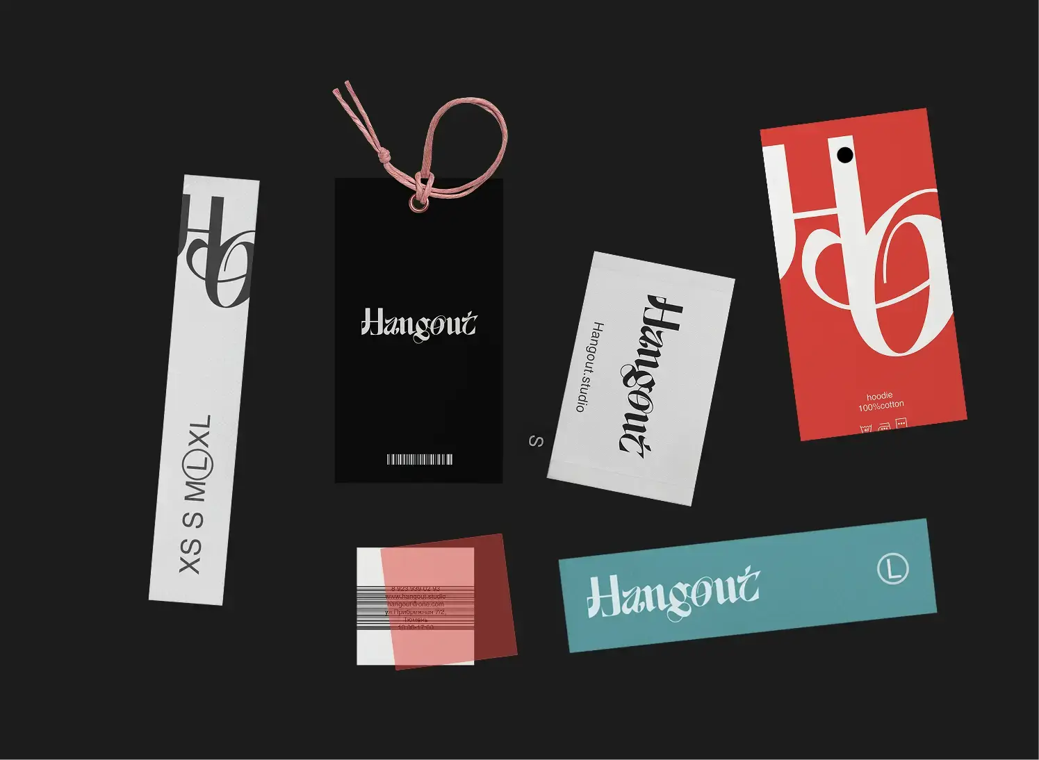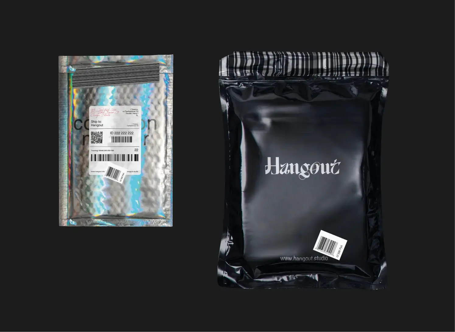Дополнительная графика — штрихкод-паттерн — работает как символ серийности и городской эстетики. Всё это вместе формирует айдентику, в которой Hangout воспринимается не просто как производитель одежды, а как культурная точка притяжения для своей аудитории.