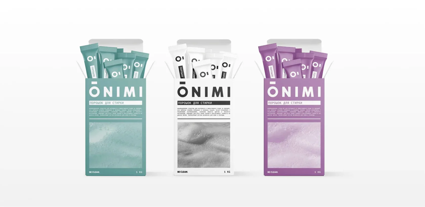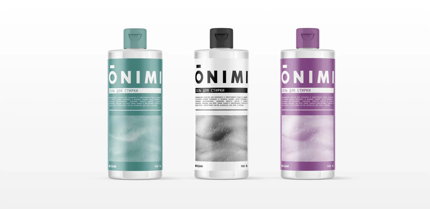 Идея брендинга ONIMI строится на сочетании экологичности, эстетики и заботы. В основе — продукты для стирки, которые одновременно эффективны и безопасны для природы, семьи и чувствительной кожи.