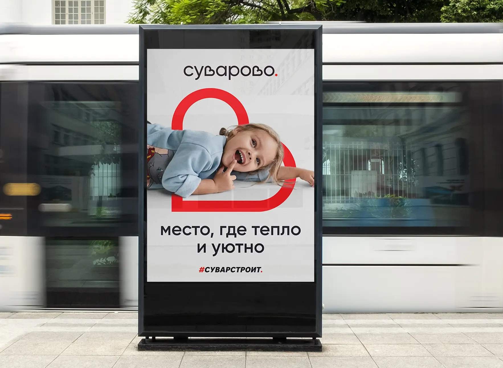 Приемственность нейминга застройщика стала основой для будущего брендинга проекта. Фирменные элементы из логотипа «#Суварстроит.» были переосмыслены и получили новое воплощение в айдентике «Суварово». В процессе работы появилась идея объединить букву «В» с символом сердца — знаком заботы и любви, без которых невозможно представить атмосферу домашнего тепла и уюта.