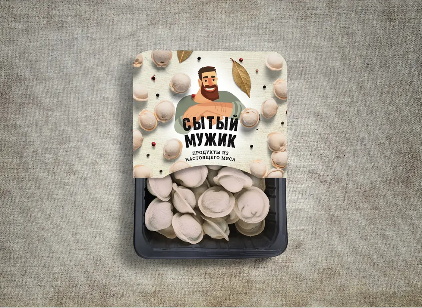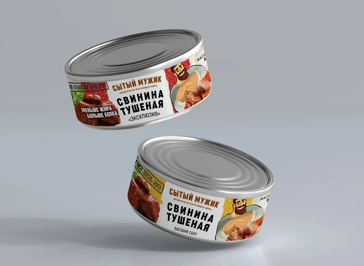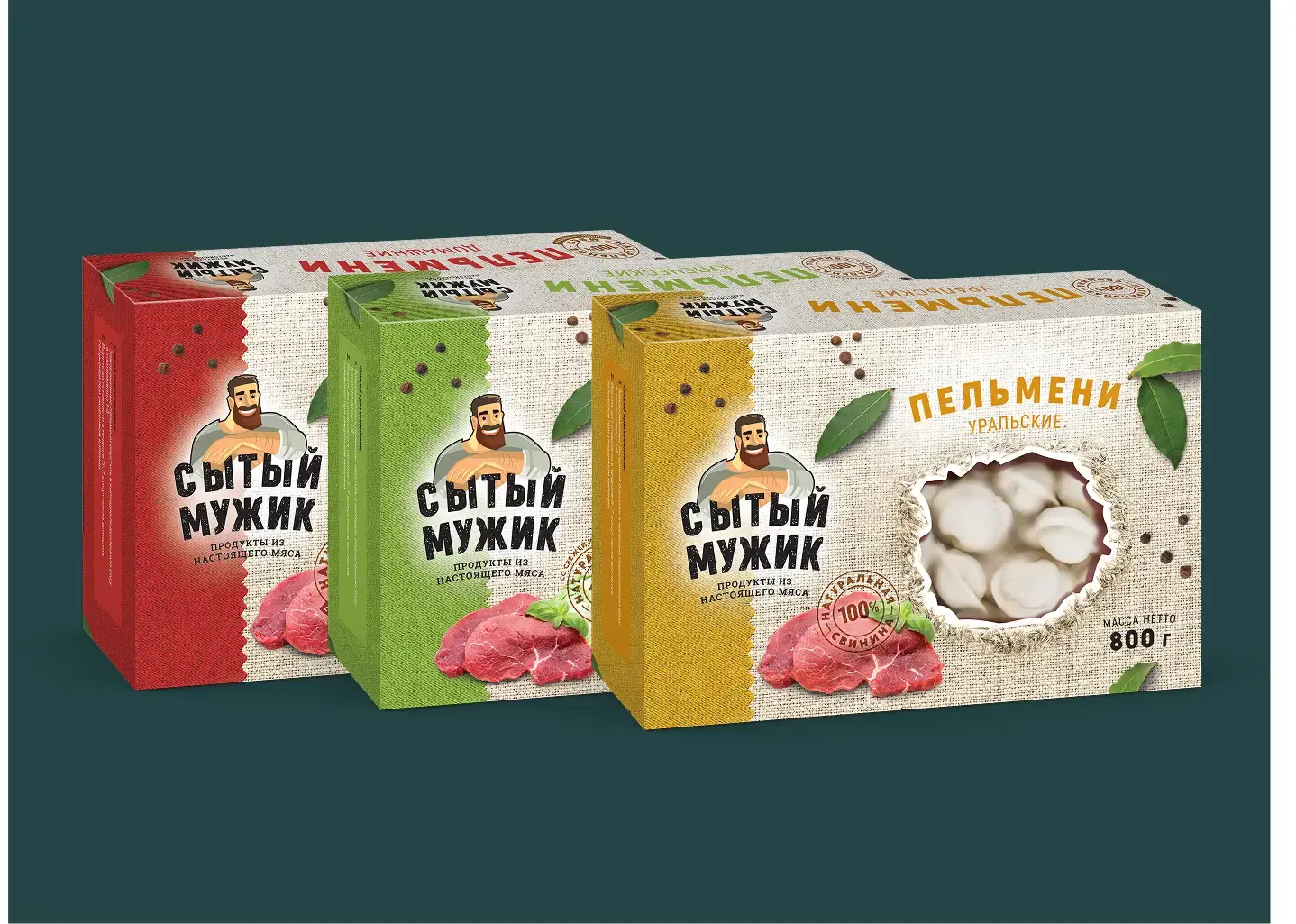 Идея брендинга «Сытый мужик» начинается с нейминга он сразу отсылает к целевой аудитории продуктов вроде тушёнки и пельменей — практичных, сытных, «по-мужски» простых и честных. Название звучит с юмором и запоминается, при этом транслирует главный посыл бренда: натуральное мясо и еда, которой можно действительно наесться.