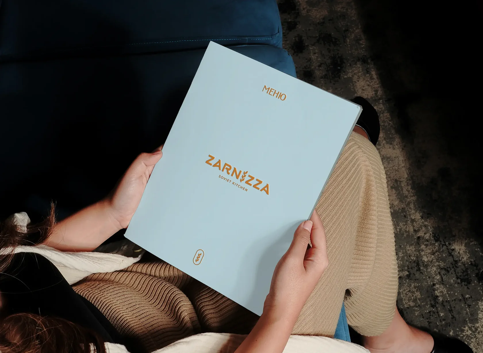 Идея брендинга ZARNIZZA строится на образах советской культуры и её нового прочтения. Ключевой символ — колос пшеницы, встроенный в логотип, — отсылает к духу времени, к труду и экономическому прорыву советских людей. Он символизирует достаток, движение вперёд и коллективную энергию. Визуально колосья работают как тонкая деталь, которая связывает бренд с историей и создает ощущение тепла и ностальгии.